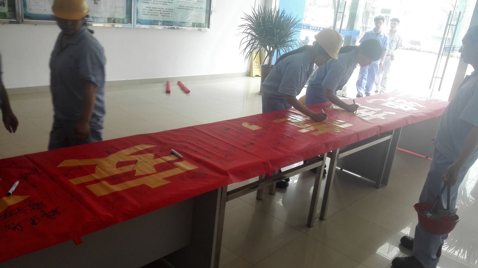 發(fā)動(dòng)企業(yè)員工在安全宣傳橫幅上簽字并利用櫥窗、建筑物張貼懸掛“安全生產(chǎn)月”標(biāo)語以及橫幅,增強(qiáng)安全宣傳的效果。